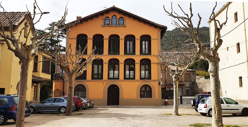 Situada a tocar de la carretera de Berga, des de 1885 tenia un baixador propi del tren Manresa-Berga. , hi havia un carrer. Entrant a l’espai original de la colònia, després de travessar el portal, hi havia el carrer Nou, que va ser el primer que va disposar d’aigua corrent, i el carrer Gran. Tancant la plaça, hi havia l’església, la torre de l’amo, el xalet del mestre, el pis de la mestra, l’escola, el forn de pa i la rectoria.