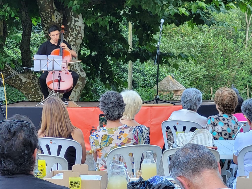 Després del recital poètic es va oferir un sopar amb pa amb tomàquet i productes de proximitat per continuar amb l’actuació d’Àuria Franch, una jove artista artesenca amb àmplia experiència sobre els escenaris, on ha estat actuant i experimentant amb diferents covers.